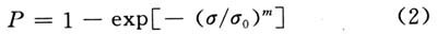 ??? 式中:P是破壞概率,σ是應力水平,σ0是特征強度,m是Weibull模數。??