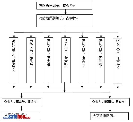 ??? 成立消防救援“指揮領導小組”,由項目經理任領導消防指揮組長,負責生產的副經理任副指揮,各部門及施工隊負責人任領導消防小組成員,下設消防求援辦公室,日常工作由安監部兼管,各施工隊成立救援隊伍。發生火災事故時,以指揮領導小組為基礎,立即成立火災救援指揮部,項目經理任總指揮,負責生產的副經理任副總指揮,負責火災救援工作的組織和指揮。項目經理不在時,由分管副經理任臨時總指揮。指揮機構圖見圖5.1