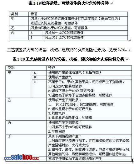 1)火災危險性分類
