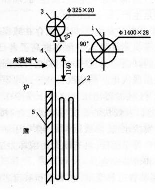 注:1——上汽包;2——過熱器管;3——減溫器;4——第11排爆管口;5——隔火墻