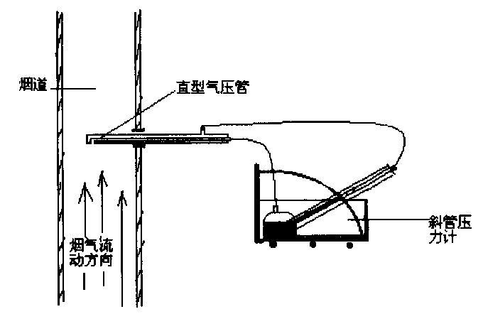 (2)測定煙氣動壓△h:使用直筒氣壓管和斜管壓力計測定取樣部位動壓△h,如圖3。