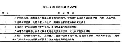 (2)工藝參數(shù)的調(diào)整控制,要處理好關(guān)鍵與一般的關(guān)系,清楚控制要點(diǎn),明確控制措施。例如有些伴有熱交換的反應(yīng)過程,工藝參數(shù)的控制措施如下。