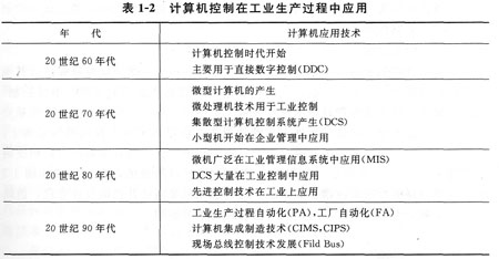 計算機在工業生產過程中的應用發展過程,如表1—2所示。在20世紀60年代,計算機在工業生產過程控制中的應用,只是代替常規的PID控制器、顯示、記錄和報警儀表,實現所謂直接數字控制(DDC)。因為這種集中式的計算機控制系統,由于可靠性不夠高,所以,模擬儀表控制系統仍舊大量采用。直至20