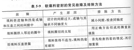 軟填料密封的常見故障及排除方法見表5—9