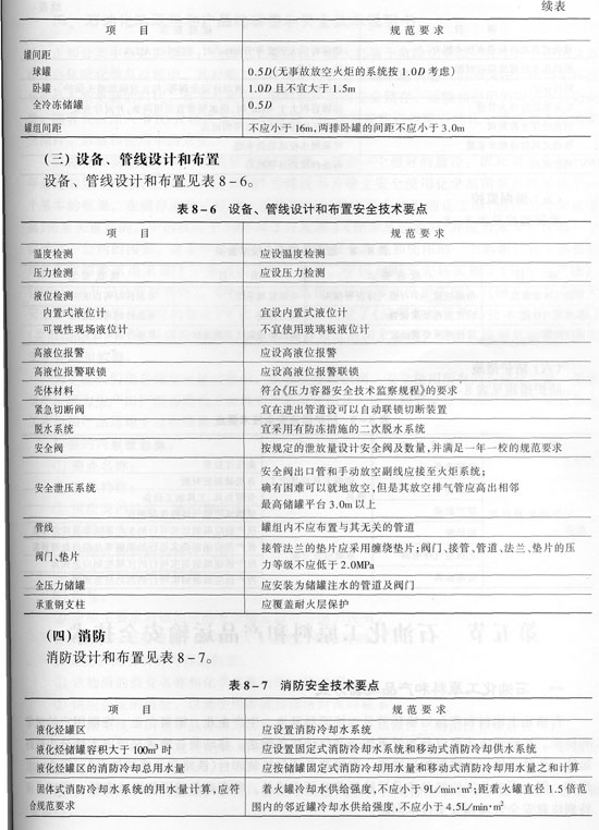 罐區(qū)內(nèi)部布置安全技術(shù)要點(diǎn)見(jiàn)表8—5。