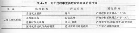 丙烯壓縮機、氯甲烷壓縮機系統(tǒng)的開停工,正常生產(chǎn)中危險因素及防范措施,除露點溫度要求略高于乙烯壓縮機系統(tǒng)外,其他相近或相同。所以,在對壓縮機系統(tǒng)的危險因素分析時把乙烯壓縮機作為代表進行分析。