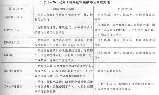公用工程系統(tǒng)包括高壓蒸汽、低壓蒸汽、高壓氮?dú)?、低壓氮?dú)狻x表風(fēng)、工廠風(fēng)、水、循環(huán)水、工藝水的引入,對所有單元的蒸汽冷凝液進(jìn)行回收處理,對所有系統(tǒng)進(jìn)行火氣的收集與排放。本單元其他常見故障及處理方法如表5—26所示。