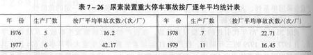 尿素裝置投產初期重大停車事故按廠逐年平均統計見表7—26。