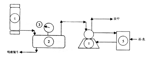 ??? 1——SX系列水循環(huán)真空泵;2——殘液罐;3——真空壓力表;4——被倒殘鋼瓶;5——補水罐