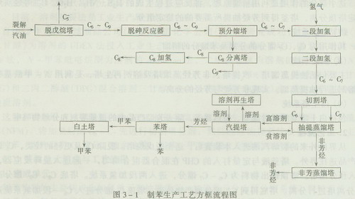 圖3—1為制苯生產(chǎn)工藝方框流程圖。