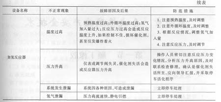回收系統(tǒng)主要保護(hù)加氫催化劑,嚴(yán)防空氣進(jìn)入系統(tǒng),造成飛溫。嚴(yán)防氫氣泄漏,氫氣壓力高,一旦泄漏很容易被靜電引燃,釀成重大事故。常見(jiàn)事故及其處理對(duì)策列于表3—95。