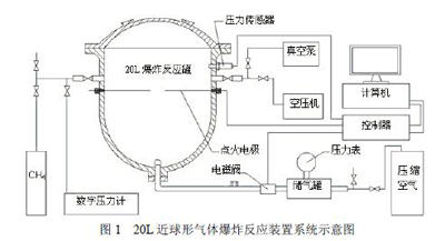 實驗系統主要由20L 爆炸反應罐、配氣系統、點火系統及測量系統四部分組成,其具體構成如圖1 所示。