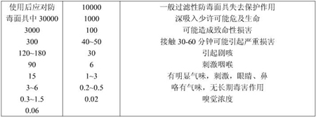 ??? 表1-1氯氣對人體的急性毒性表