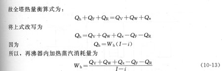 由式(10—13)可見,若原料液經(jīng)過預熱后使其帶人的熱量增加,則再沸器內(nèi)加熱劑的消耗量將減少。至于塔頂冷凝器中冷卻介質(zhì)的用量可通過對冷凝器的熱量衡算出。