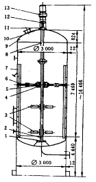 5.中間軸承座 6.拉桿 7.筒體 8.上軸 9.封頭