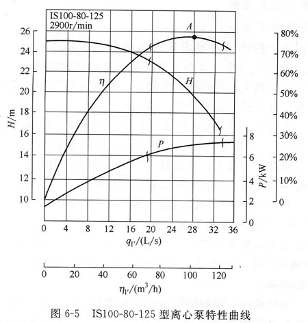 實驗表明,離心泵的揚程、功率及效率等主要性能均與流量有關,把它們與流量之間的關系用圖表示出來,就構成了離心泵的特性曲線,如圖6—5所示。