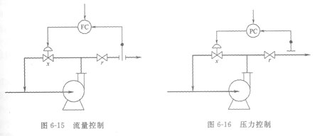 3)改變旁路回流量? 這種控制方式,就是在泵的出口與人口之間增加一個旁路管道,讓一部分排出量重新回到泵的入口,從而可以控制這一部分的回流量來達到穩定排出量的目的。圖6—15是這種控制方式的示意圖。如果用于壓力控制,則如圖6—16所示。