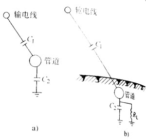 1.靜電感應(容性耦合) 這一方式主要出現在施工期間的地面管道或架設在絕緣墊(如木塊)上時,通過高壓線和管道之間、管道和大