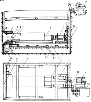 1)內擠壓出土法。一般用于大口徑套管頂進。在頂進套管頂端加焊特殊頂頭.頂頭外徑略大于管徑,內壁作成錐體(見圖9-3),借助油缸的推力,將進入管內泥土壓縮成小于管內徑的圓柱體,使泥土與管底壁脫離。這樣,不僅使管道摩擦力減小,而且可以防止管內的積土阻塞。為了使出土機械化,應配備內擠壓機械出土專用設備。將切土鋼絲繩繞頂頭后壁1圈,并套入活絡夾箍內,再將出土車推入管內靠近頂頭后壁,并將阻動鋼閂壓入槽內(事先按小車長度焊接于鋼管內)。啟動油泵,按額定長度要求頂進,擠壓后進入管內的圓柱體土壤引至出土車上。管道每次頂進長度應根據出土車長度計算而定。