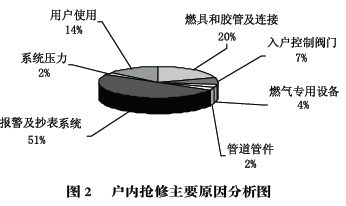 燃氣以其清潔、高效的優勢,已成為城市居民使用的主要能源,其建設與發展也成為城市現代化的重要標志之一。但是,燃氣在給人們帶來使用便利的同時,確保用戶安全使用的問題也越來越突出。本文試圖通過對燃氣用戶搶修資料的統計與分析中,找出產生隱患的原因,提出針對性的整改措施,杜絕或減少居民用戶燃氣事故的發生。