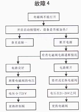 (9)拆電磁闊前,應關(guān)閉出口閥,開入口閥,開機加熱直至88℃,加熱器停止加熱,將LPG壓回貯罐,再關(guān)機切斷電源,關(guān)入口閥,開出口閥卸去爐壓后,再關(guān)入口閥。壓力若仍升高,表明閥漏需修理或更換。