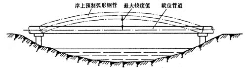 ①根據撓度計算的數值,在地面平臺上完成直管部分拼裝焊接(跨距大的河流可分若干段)。