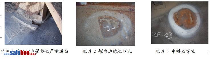 3、附件支撐與底板連接處腐蝕:通過現場實際分析,發現附件支撐與底板連接處容易受到腐蝕的原因是防腐效果不理想,造成這種情況是由于該處空間狹小,防腐困難。見照片1。