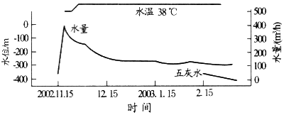 圖6 突水水量、水溫、五灰巖水動態曲線示意圖