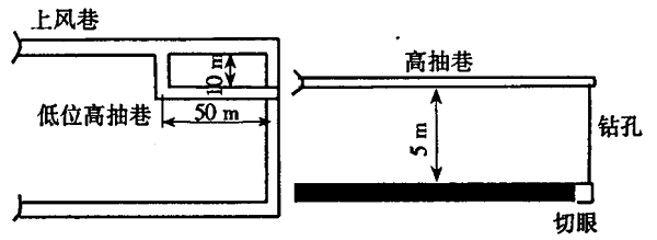 低位高抽巷是為專門解決采煤工作回采初期的瓦斯問(wèn)題施工的一條短巷道。與高抽巷相比較,其長(zhǎng)度短,層位低,服務(wù)時(shí)間也較短。