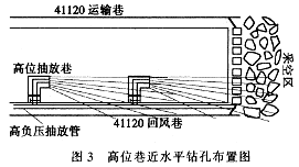 ????圖3 高位巷近水平鉆孔布置圖
