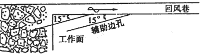 ?。?)輔助邊孔抽放。為解決工作面上隅角至回風巷方向20m范圍切頂線瓦斯超限,在風巷每隔20m打與風巷夾角15°,Φ91mm鉆孔,鉆孔長40m,終孔控高在煤層頂板12m,如圖4所示。