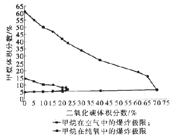 圖3 甲烷在純氧中與在空氣中爆炸極限對比
