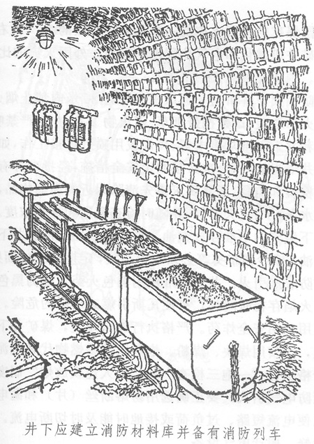 設(shè)置消防材料庫。為了迅速有效地?fù)錅绲V井火災(zāi),每個礦井必須在井口附近設(shè)置消防材料庫;井下每個生產(chǎn)水平的主要運輸大巷中也應(yīng)設(shè)置消防材料庫,儲備消防器材,并備有消防列車。滅火材料、工具的品種和數(shù)量必須滿足礦井滅火時的需要。滅火時消耗的材料和工具應(yīng)及時補足。消防材料庫中的材料和工具,平時不準(zhǔn)挪作他用。井下的火藥庫、充電硐室、水泵房和采區(qū)變電所中都要配備足夠的滅火器材。電氣火災(zāi)和油料火災(zāi),不能用水撲滅,而應(yīng)采用巖粉或砂子撲滅。發(fā)生電氣火災(zāi)時,應(yīng)首先拉閘斷電。