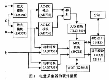 電量采集器的硬件框圖如圖1。