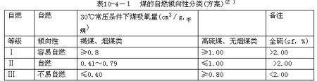 ?。保梗梗材臧娴摹睹旱V安全規(guī)程》執(zhí)行說明規(guī)定采用吸氧量法。即“雙氣路氣相色譜儀吸氧鑒定法”,鑒定結(jié)果按表10-4-1分類(方案)確定自燃傾向性等級(jí)。