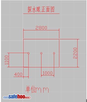 2、每次探放水深度50米,采用三角形布置方式。具體見探水眼布置圖