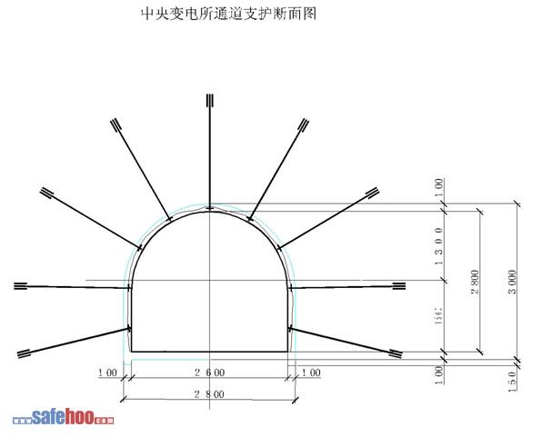 掘進斷面:墻高1.92米,拱高1.52米,寬3.04米;凈斷面墻高1.8米,拱高1.4米,寬2.8米。