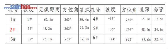 鉆探位置 | 孔號 | 設計方位 | 設計傾角 | 孔深 |