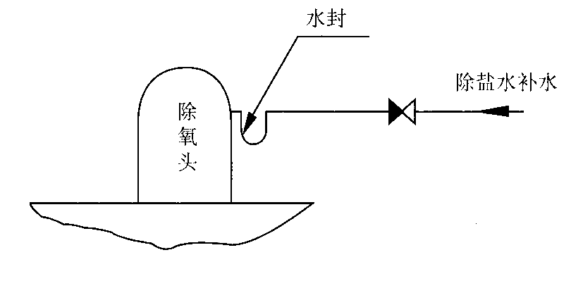 處理方案是,在緊貼除氧頭處,除鹽水補水管加一U型水封如圖2,這樣補水后,只有水封后很短約100 mm空管子空間,振動能量將大為減少。另外,U型水封還可以吸收來自管道的冷熱膨脹,保護焊口及逆止門。