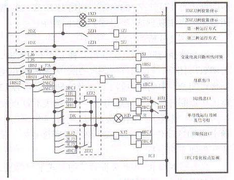 (2) 增加1DZ、2DZ刀閘的常開輔助接點啟動中間繼電器1ZJ、2ZJ的回路,利用1ZJ、2ZJ的常閉轉換接點串聯到選擇元件的二次回路中。