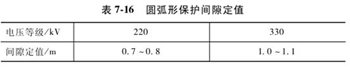 采用圓弧形保護間隙,其間隙距離按表 7-16 的規(guī)定進行整定。