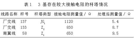 鐵塔接地系統中,接地連板處存在較大接觸電阻,表1是幾個存在較大接觸電阻值的桿塔。