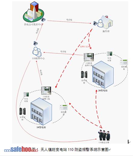 (2)將周界入侵和空間入侵告警信號通過電話線與公安機關110服務平臺聯網。一旦報警,110指揮中心同時通知供電公司監控中心和110巡邏隊。110巡邏隊會在5~30分鐘內趕到現場;同時,供電公司監控中心會通知操作隊,操作隊將盡快趕到現場。