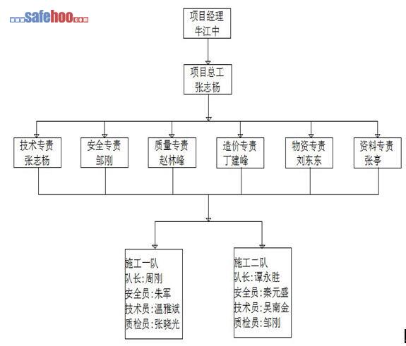 2.3.1.1安全組織與網(wǎng)絡(luò):建立并健全安全保證體系及網(wǎng)絡(luò)。建立以項目經(jīng)理為第一安全責(zé)任人,項目總工為安全技術(shù)負(fù)責(zé)人,由各部門領(lǐng)導(dǎo),班隊第一安全責(zé)任人及安全員組成本工程安全保證體系,按照安全施工合同,《輸變電工程達(dá)標(biāo)投產(chǎn)考核評定標(biāo)準(zhǔn)》、《電力建設(shè)安全施工管理規(guī)定》等制訂本工程安全管理辦法。落實各級安全責(zé)任制度,做到層層抓安全,人人管安全,安全責(zé)任和風(fēng)險全員承擔(dān),實現(xiàn)安全管理目標(biāo)。
