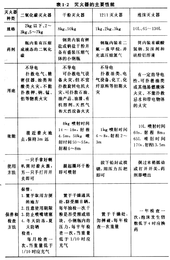 (10)一般可燃物著火可用酸堿滅火器或清水滅火。油類著火用泡沫、二氧化碳或干粉滅火器撲滅。