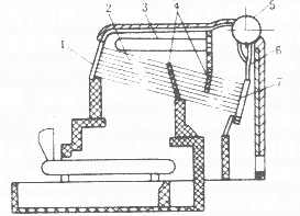 1―前分聯箱 2―爐管 3―過熱器 4―折煙墻 5―鍋筒 6―分聯管 7―后分聯箱