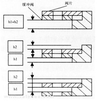 4.1公式1:α=F/m(加速度=外力/質(zhì)量),圖3顯示了公式1的緩沖原理,即改變作用在運動部件上的彈簧力。在閥片剛開啟時,僅僅由關閉彈簧提供彈簧力,彈簧力的增加是線性的。如果利用緩沖彈簧直接作用在緩沖片上,將作用在緩沖片上的彈簧力傳遞給閥片,就能增加作用在閥片和緩沖片上的彈簧力,這樣也必將相應降低閥片的加速度。