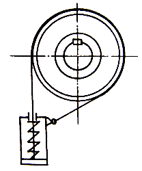 圖1所示為周期作用的偏心帶式制動器,制動輪1借助平鍵2與曲軸3相連,內側鉚接摩擦襯料的制動帶5的一端固定在機身上;另一端用制動彈簧6張緊。制動輪內孔與曲軸同心,而外緣與內孔不同心有一偏心距,偏心距控制曲軸旋轉在不同位置時的制動力矩。曲軸接近上死點附近,制動帶繃得最緊,制動力矩也最大,防止曲軸超越上死點,導致滑塊因自重而下降,發生連沖事故;曲軸在其他位置時,制動帶不完全松開,仍保持一定的制動力矩,用以克服剛性離合器的"超前"現象。制動力矩的大小可用調節螺釘來調節。