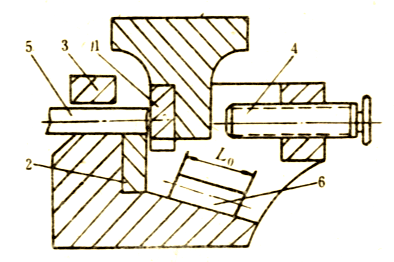 剪床上的剪切裝置如圖1所示。原棒料5送進剪床后,用壓板3固緊,下料長度L<sub>0</sub>由可調螺桿4定位,在上刀片1和下刀片2的剪切作用下將毛坯6切斷。