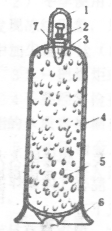 1―瓶帽 2―瓶閥 3―毛氈 4―瓶體 5―多孔性填料 6―瓶座 7―瓶口